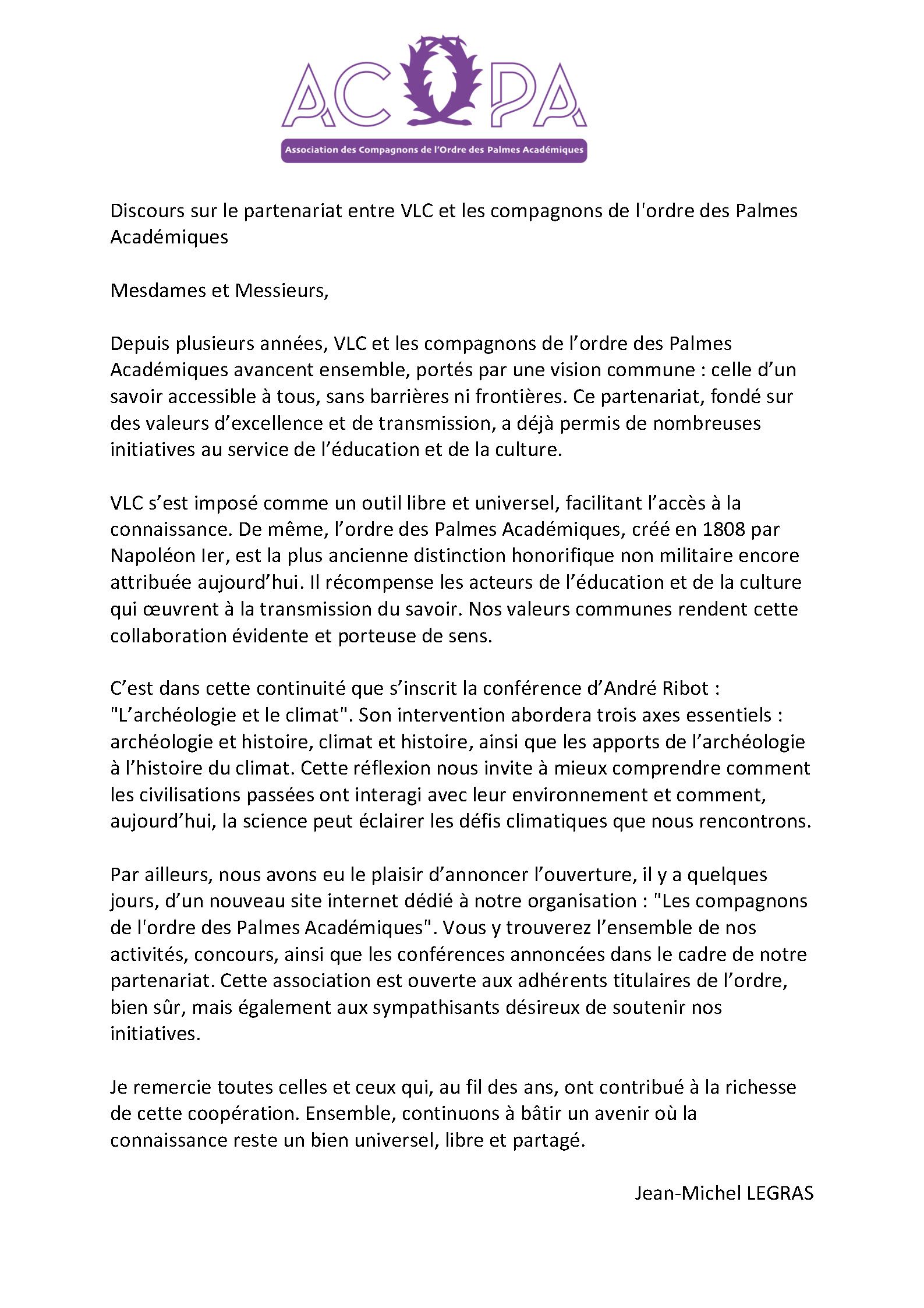 L’événement s’inscrivait dans le programme culturel de VLC, qui organise régulièrement des conférences et rencontres autour du patrimoine et de l’histoire avec les Compagnons de l’Ordre des palmes Académiques